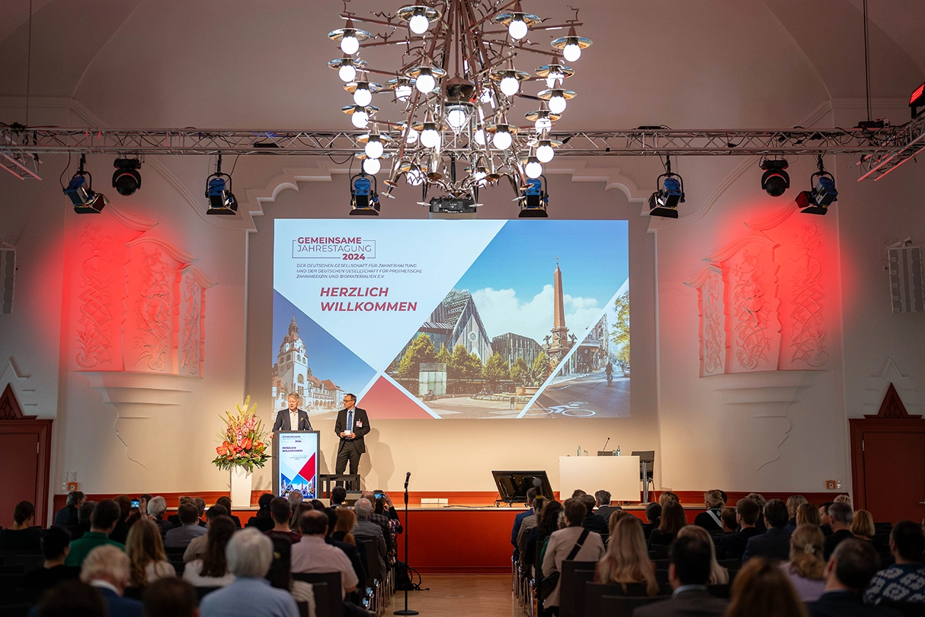 Rund 620 Besucherinnen und Besucher folgten der Einladung zur ersten gemeinsamen Jahrestagung der Deutschen Gesellschaft für Prothetische Zahnmedizin und Biomaterialien (DGPro) und der Deutschen Gesellschaft für Zahnerhaltung (DGZ) vom 13. bis 15. Juni 2024 in Leipzig. Der wissenschaftliche Kongress beförderte den Austausch zwischen den beiden Fachrichtungen, bot ein Update zum Erkenntnisstand und vermittelte einen Einblick in innovative Methoden.