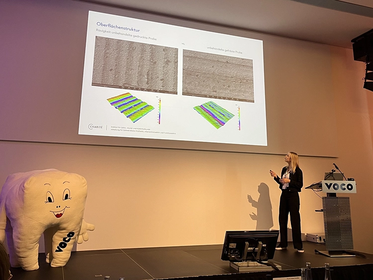 - Miriam C. C. Albrecht (Charité-Universitätsmedizin Berlin, Abteilung für Zahnärztliche Prothetik, Alterszahnmedizin und Funktionslehre): Comparative analysis of 3D-printed hybrid resin-ceramic materials for indirect restorations