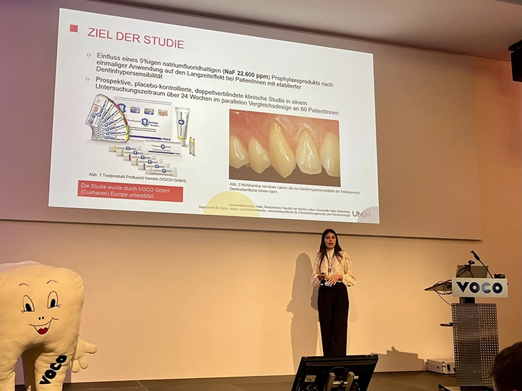 - Sophia B. Alvino (Martin-Luther-Universität Halle-Wittenberg, Medizinische Fakultät, Department für Zahn-, Mund- und Kieferheilkunde): Klinische Studie zur Wirksamkeit eines natriumfluoridhaltigen Lacks auf die Dentinhypersensibilität