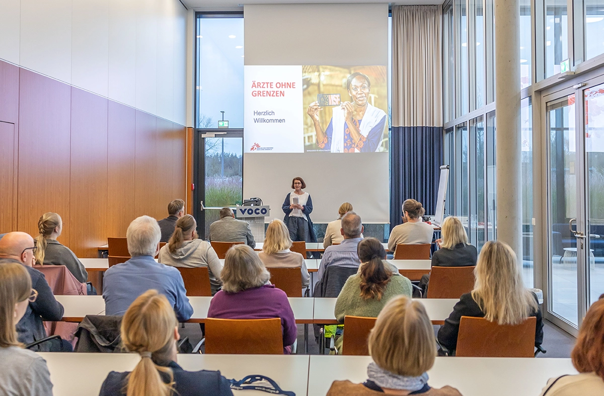 Wo sonst über Produkte und Projekte gesprochen wird, ging es jetzt um eine für viele Menschen tödlich endende Krankheit – aber auch um Hoffnung und Hilfe. Im voll besetzten Konferenzraum folgten die Mitarbeiter/-innen von VOCO den Ausführungen der OP-Schwester, die bereits mehrere Einsätze in verschiedenen Krisengebieten absolviert hat.