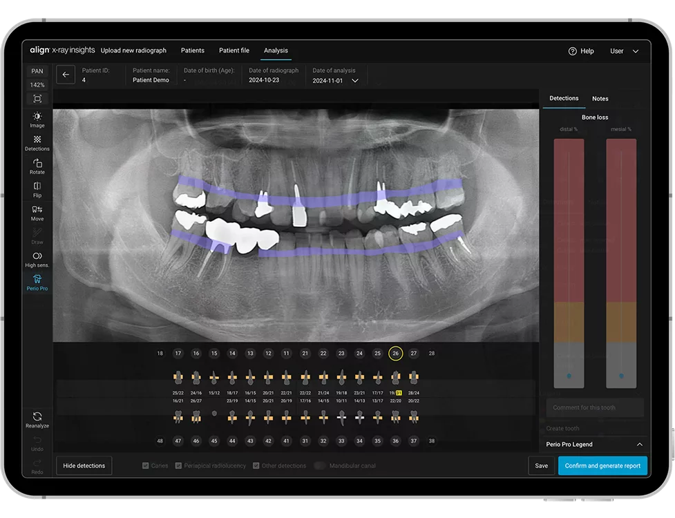 Dr. Karla Soto, Zahnärztin für Allgemeinmedizin und Mitglied der Align® Fakultät mit einer Praxis in Boca Raton, Florida, fügte hinzu: „Der iTero Lumina Scanner überzeugt bei anspruchsvollen Scans mit großen Spannweiten, wie z. B. Full Arch-Implantatversorgungen oder sogar zahnlose Bereiche. Die Menge an erfassten Daten und Gewebe ist beeindruckend und verwandelt einst anspruchsvolle Scans in einen schnellen, einfachen und komfortablen Prozess – für mich, mein Team und meine Patienten.“