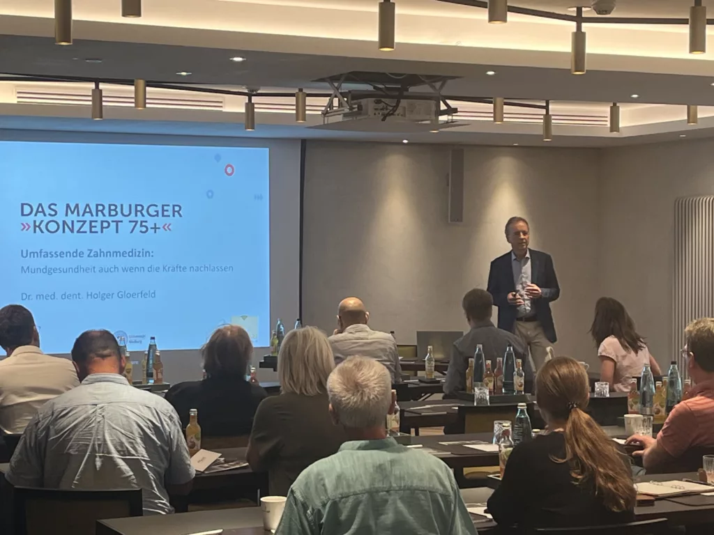 Schon sehr früh in seinem Leben als Zahnmediziner nahm Dr. med. dent. Holger Gloerfeld die Seniorenzahnmedizin in den Blick, da seiner Meinung nach gerade diese Patienten und Patientinnen – als eine Gruppe am prothetischen „Versorgungsrand“– besonderer Fürsorge bedürfen, zahnärztlich ebenso wie zahntechnisch. Dabei war es ihm ein besonderes Anliegen, auch für diejenigen Patienten, die sämtliche eigenen Zähne verloren haben, Lebensqualität ästhetisch wie funktionell mit guter Totalprothetik wieder herzustellen. Daher wurde dieses Thema zum Schwerpunkt seiner Lehrtätigkeit für die zahnärztliche Aus-und Weiterbildung an der Universität Marburg, was schließlich zur Formulierung des „Marburger Konzept 75+“ führte. Darin macht er Vorschläge, wie eine umfassende Zahnmedizin für die letzte Lebensphase bestmöglich umgesetzt werden könnte und gibt Antworten auf Fragestellungen, wie:
