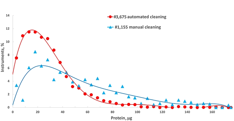 Untersuchungen eines akkreditierten Labors2 belegen, dass die maschinelle Aufbereitung im DAC Universal D von Dentsply Sirona effizienter ist als der manuelle Aufbereitungsprozess. Dafür wurden die Reinigungsergebnisse von fast 5.000 Hand- und Winkelstücken untersucht und ausgewertet. Darüber hinaus bestätigte die Auswertung der MAUDE-Datenbank der FDA, dass die Reinigung eine der wichtigsten Voraussetzungen für den langfristigen und sicheren Einsatz von Hand- und Winkelstücken ist.