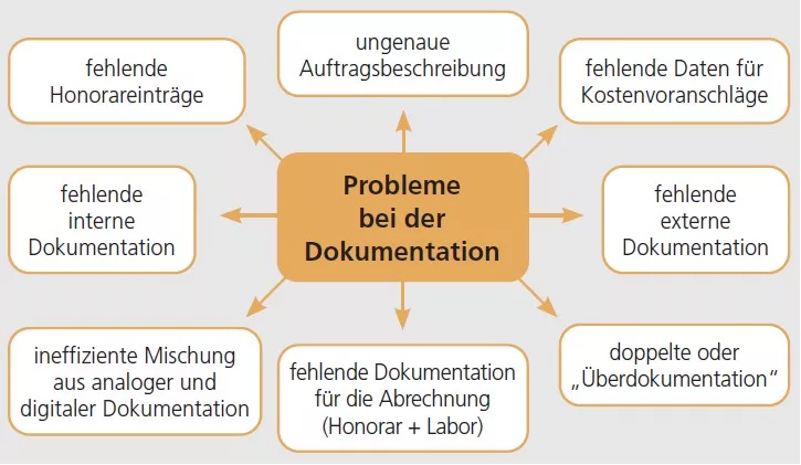 Einer der größten Zeitfresser in der Kommunikation zwischen Dentallaboren und Zahnarztpraxen ist eine fehlende oder fehlerhafte Dokumentation. Eine lückenlose Dokumentation während der gesamten Wertschöpfungskette von der Diagnose (Bestandsaufnahme) bis zur Abrechnung des Zahnersatzes ist daher unerlässlich.