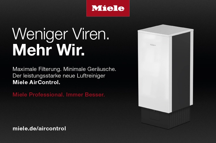 Seit vielen Jahrzehnten steht Miele Professional für verlässliche Hygienekonzepte in medizinischen Einrichtungen, Hotels und Gastronomie. Diese Hygienekompetenz überträgt Miele nun auf den Bereich der Luftreinigung: „Saubere Luft ist ein Grundbedürfnis und wird vermutlich bald zu einem Hygienestandard – und das nicht nur mit Blick auf Viren und Bakterien, sondern auch auf Pollen und Feinstaub“, sagt Dr. Christian Kluge, Leiter der Business Unit Professional der Miele Gruppe. Das gelte grundsätzlich, auch wenn die Dringlichkeit des Themas mit Covid-19 massiv gestiegen sei.