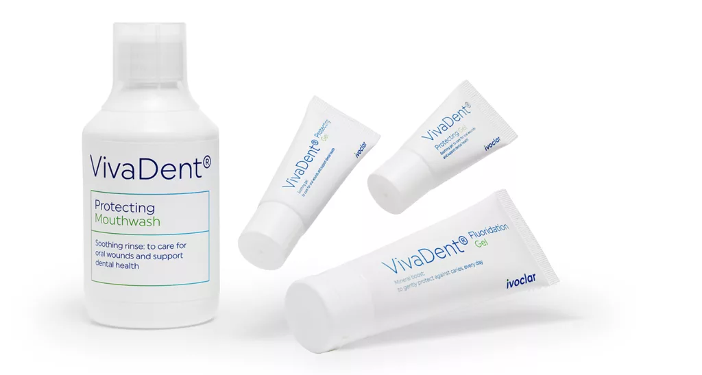 - VivaDent Protecting Gel: Entwickelt zur gezielten Anwendung nach professionellen Zahnreinigungen, um die Zahnoberflächen zu beruhigen und eine Schutzschicht gegen äussere Einflüsse zu bilden. Es unterstützt die Mundgesundheit und sorgt für ein angenehmes Mundgefühl nach der Behandlung.