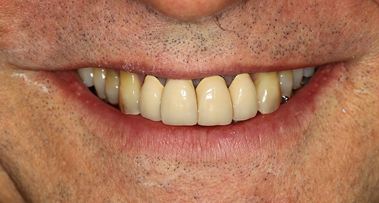 Für die dynamische Okklusion wurde eine fronteckzahngeführte Variante programmiert. Die Rehabilitation aller Zähne in Keramik geschah auf Wunsch des Patienten. Alternativ hätte auch eine Versorgung mit Komposit für ausreichend stabile Okklusionsverhältnisse gesorgt. Die gegenüber Keramik verminderte Abrasionsresistenz und ein damit verbundener zyklischer Erneuerungsbedarf der Kompositrestaurationen sprach wiederum für die prothetische Versorgung.