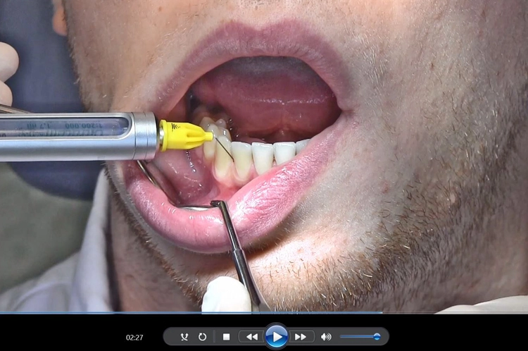 Bevor jede Injektion am Patienten gezeigt wird, fasst der Experte die Vor- und Nachteile der jeweiligen Techniken sowie die Indikationen, bei denen diese zum Einsatz kommen, zusammen. So sei es bei der Leitungsanästhesie des Nervus alveolaris inferior wichtig, die veränderte Lage des Foramen mandibulae in verschiedenen Altersgruppen zu kennen, um Schädigungen des Nervs zu verhindern. Außerdem zu beachten: Bei antikoagulierten Patienten sollte diese Technik nicht zum Einsatz kommen. Auch die zu verwendenden Spritzensysteme und Kanülen sind Thema der Videos.