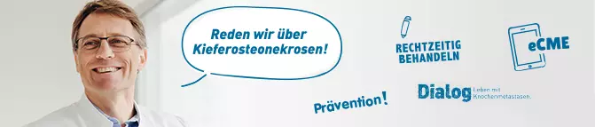 Im Rahmen eines neuen eCME-Learnings unter http://cme.medlearning.de/ können sich interessierte Onkologen, Zahnärzte und Kieferchirurgen kostenlos über Prävention, Diagnose und Behandlung von Kieferosteonekrosen informieren. Die Inhalte basieren auf der interdisziplinären Zusammenarbeit der Experten PD Dr. Dr. med. Sven Otto (Klinik und Poliklinik für Mund-, Kiefer- und Gesichtschirurgie des Klinikums der Universität München), PD Dr. med. Tilman Todenhöfer (Klinik für Urologie, Universitätsklinikum Tübingen) und Prof. Dr. med. Ingo Diel (Praxisklinik am Rosengarten Mannheim, Schwerpunkt Gynäkologische Onkologie).