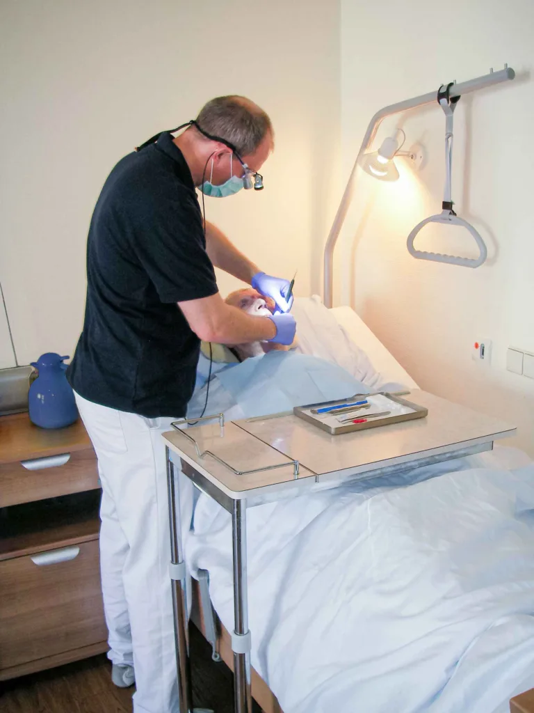 Das Fach Seniorenzahnmedizin bietet großes, fächerübergreifendes Potenzial. „Wir möchten möglichst viele Kolleginnen und Kollegen ermutigen, sich in diesem Bereich fortzubilden und geriatrische Patienten aufsuchend zu betreuen“, sagt Dr. Ludwig, stellvertretender Vorsitzender im Ausschuss Alterszahnmedizin der Bundeszahnärztekammer (BZÄK). Für ihn ist die aufsuchende Betreuung vulnerabler Patientengruppen, die seit 2018 im Bundesmantelvertrag ausdrücklich Teil des Versorgungsauftrages ist [3], gelebter Praxisalltag. Der Einsatz einer mobilen Behandlungseinheit ist nicht Voraussetzung für die aufsuchende zahnmedizinische Betreuung, lautet das Statement Nr. 6 in der Leitlinie.