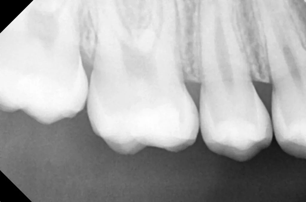 Bei routinemäßigen Röntgenkontrollen ergeben sich manchmal Zufallsbefunde unklarer Genese. So stellt sich beispielsweise bei der Betrachtung der Abbildung 1 die Frage, wie sich ein Zahnhartsubstanzdefekt so schnell entwickeln konnte. Ein weiteres Röntgenbild (Abb. 2), das vor dem Zahndurchbruch aufgenommen wurde, zeigt jedoch, dass es sich in diesem Fall nicht um Karies, sondern um die sogenannte präeruptive intrakoronale Resorption (PEIR) handelt. Für diesen Befund finden sich in der Fachliteratur auch noch andere Bezeichnungen wie „idiopathic external resorption of unerupted permanent teeth“ [1], „intra-follicular caries“ [2], „radiolucent lesions resembling caries“ [3], „occult caries“ [ 4] oder „pre-eruptive caries“ [5].