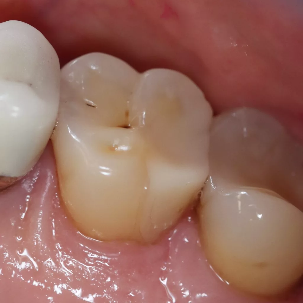 Während Bakterien etwa 500 bis 3000 µm tief in die Zahnhartsubstanz eindringen [29,43], können Endotoxine auch durch 0,5 mm dicke Restdentinschichten bis hin zur Pulpa diffundieren [30]. Endotoxine, die in die Pulpa eindringen, führen zur Freisetzung von Entzündungsmediatoren aus den Odontoblasten und Makrophagen. Diese Mediatoren begünstigen die Entwicklung einer chronischen Entzündung des Pulpagewebes [40], die zu einer langfristigen Schädigung der Pulpa führen kann. Auch inaktive Karies hinterlässt histologische Veränderungen im Pulpagewebe [22]. Diese Entzündungen sind nach einer selektiven Kariesexkavation in histologischen Untersuchungen häufig zu beobachten, und eine vollständige Heilung der Pulpa ist folglich aufgrund der bakteriellen Infektion ausgeschlossen. Obwohl die Zähne klinisch oftmals asymptomatisch bleiben und Sensibilitätstests in vielen Fällen unauffällig ausfallen, gibt es eine Diskrepanz zwischen den klinischen Befunden und den histologischen Veränderungen [35,36,44]. Dies weist darauf hin, dass klinische Symptomfreiheit nicht zwangsläufig mit einer tatsächlichen Heilung des Pulpagewebes gleichzusetzen ist. Der wahre Zustand der Pulpa lässt sich zum jetzigen Zeitpunkt durch keinen klinischen Test uneingeschränkt darstellen [11]. Nur eine histologische Untersuchung kann Aufschluss über den tatsächlichen Pulpastatus geben [18]. Eine rein klinische Bewertung der Symptomfreiheit nach einer selektiven Kariesexkavation ist daher aus wissenschaftlicher Sicht nicht ausreichend, um den Erfolg der Behandlung zu beurteilen.