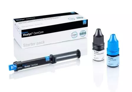 Zum Visalys® CemCore System gehören drei Grundbestandteile: Der namensgebende Kompositzement und jeweils ein Einkomponenten-Primer für Zähne bzw. Restauration.