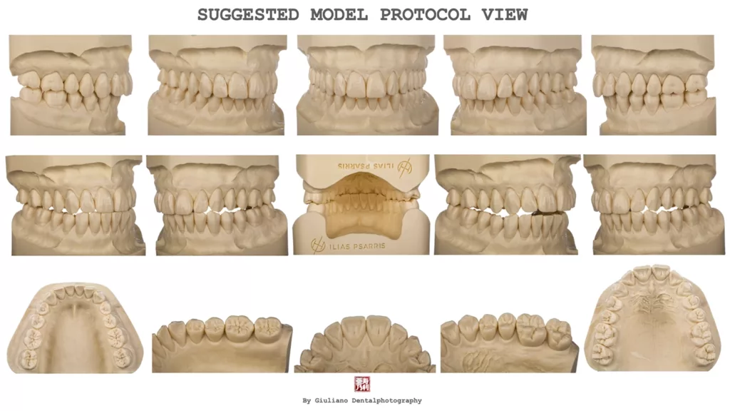 Bevor wir uns mit den verschiedenen Fototechniken befassen, möchte ich meine Philosophie zu Kamera- und Beleuchtungseinstellungen erläutern. Die meisten Kolleginnen und Kollegen sind keine professionellen Fotografen/-innen, sodass eine Anleitung oder ein grundlegendes System hilfreich ist. Daher empfehle ich, immer die gleichen Kameraeinstellungen zu verwenden und je nach Fall nur Licht, Abstand, Abstrahlwinkel und Intensität anzupassen (Abb. 12). Abbildung 22 zeigt ein Beispiel, wie sich zahntechnische Laborarbeiten nach einem Protokoll archivieren lassen.