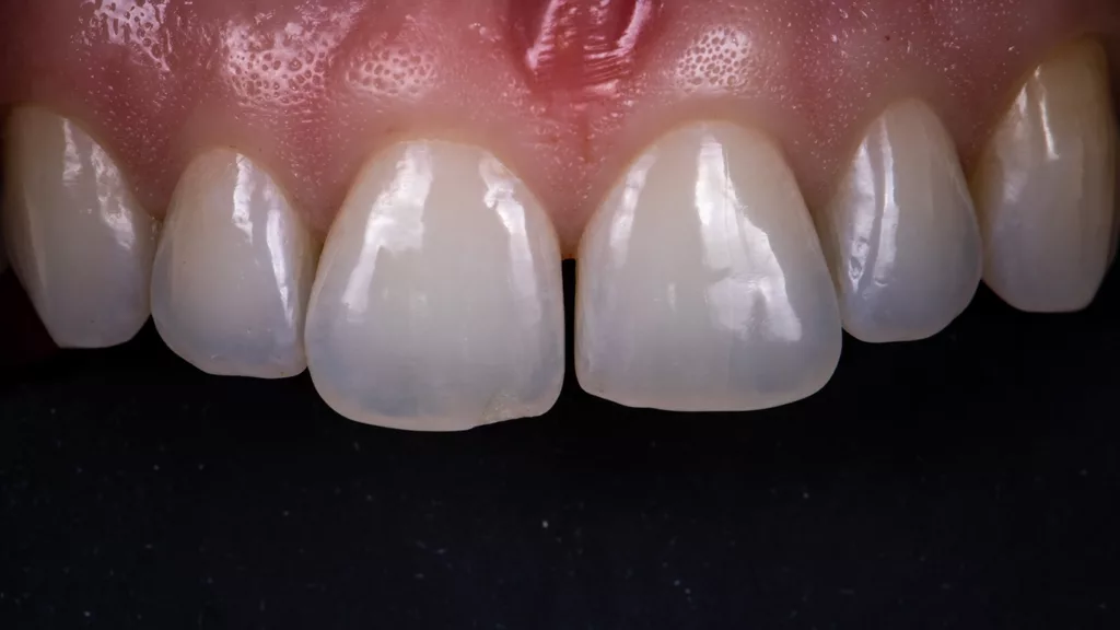 Für die Farbabstimmung ist eine gezielte Beleuchtung besonders wichtig. Hier wird oft ein seitlicher Blitz bei 45º/0ºeingesetzt (Abb. 32) oder ein kreuzpolarisierter Filter verwendet, um Spiegelungen zu minimieren und die Zahnfarbe korrekt darzustellen (Abb. 33). Diese Techniken ermöglichen es, in der Dentalfotografie präzise und ansprechende Ergebnisse zu erzielen.