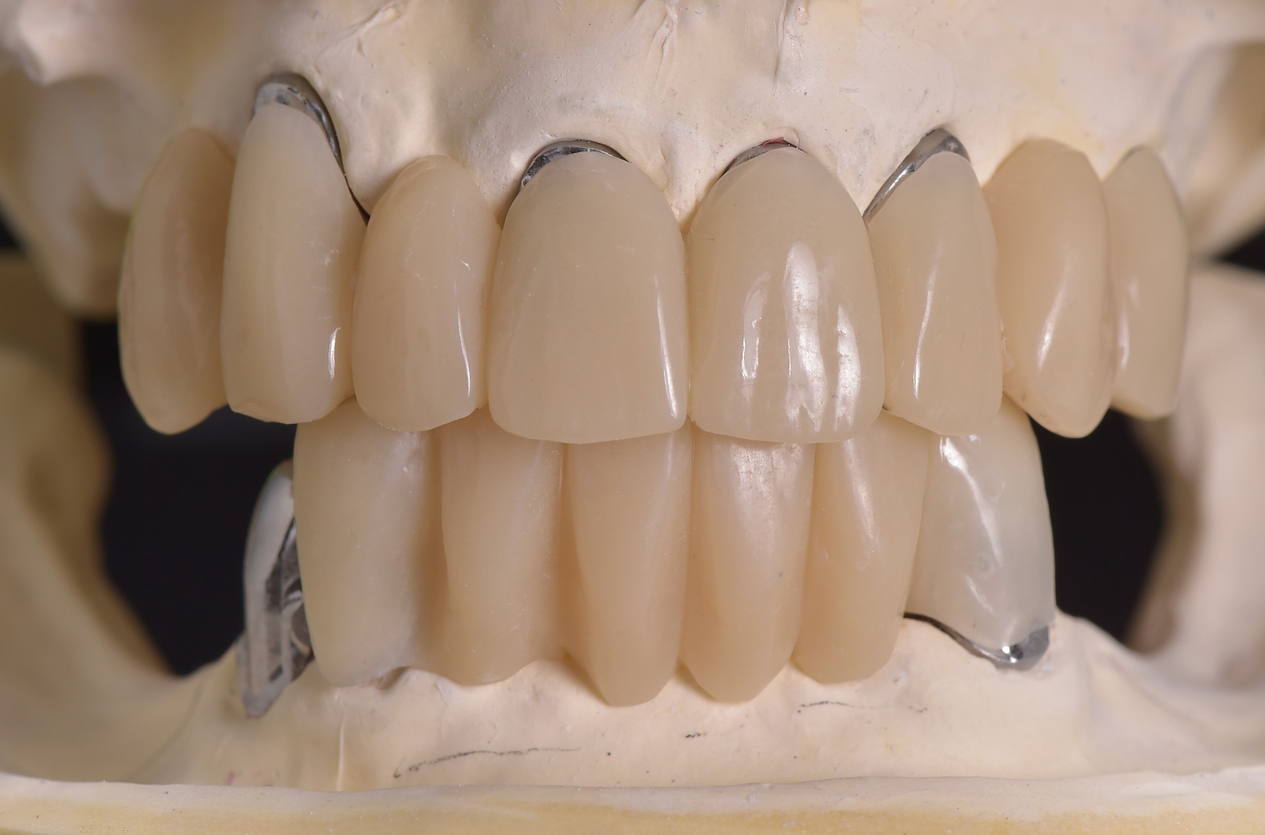Mit dieser Vorgehensweise sind nach der Präparation in der Praxis nur noch zwei statt der üblichen vier Termine bis zum Einsetzen notwendig: eine Innenteilanprobe mit Mock-up und Bissnahme und eine Gesamtanprobe (Gerüst und Ästhetik).