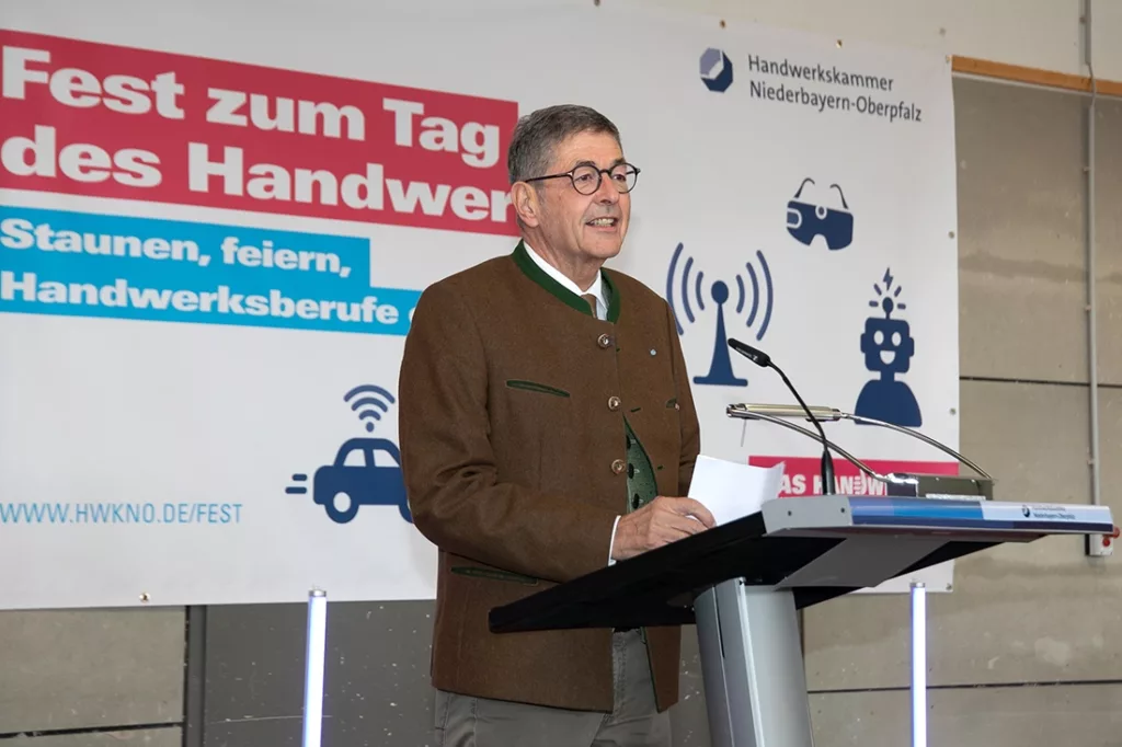Der Präsident der Handwerkskammer, Dr. Georg Haber, lobte in seiner Rede die Vielfalt und Innovationskraft des Handwerks: „Jetzt ist die Zeit, unsere Regionen fit für die Zukunft zu machen. Das Handwerk ist bereit, die Zukunft anzupacken.“ Schirmherr der Veranstaltung war Tobias Gotthardt, Staatssekretär im Bayerischen Wirtschaftsministerium. „Bayern ist Handwerker-Land“, so Gotthardt in seinem Grußwort. „Für uns in der bayerischen Wirtschaftspolitik ist jeder Tag ein ‚Tag des Handwerks‘, weil unser Handwerk für Leistung und Qualität steht, für ursprüngliches Unternehmertum in persönlicher Verantwortung, für den ehrbaren Kaufmann und für gute Zukunftsperspektiven.“